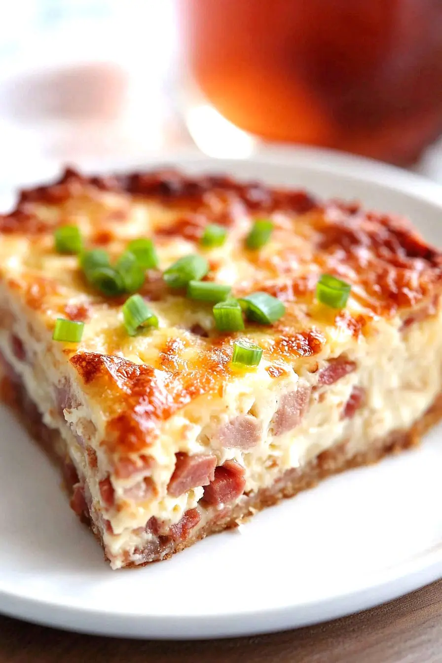 - No-fuss preparation – Unlike traditional quiche, there’s no pie crust to make or roll out – just mix, pour, and bake. The baking mix creates its own crust as it bakes!