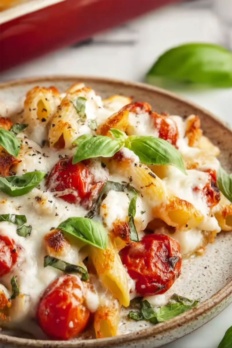 Here’s my go-to caprese pasta bake recipe, combining the classic flavors of fresh mozzarella, tomatoes, and basil with perfectly cooked pasta, all baked until golden and bubbly under a layer of melted cheese.