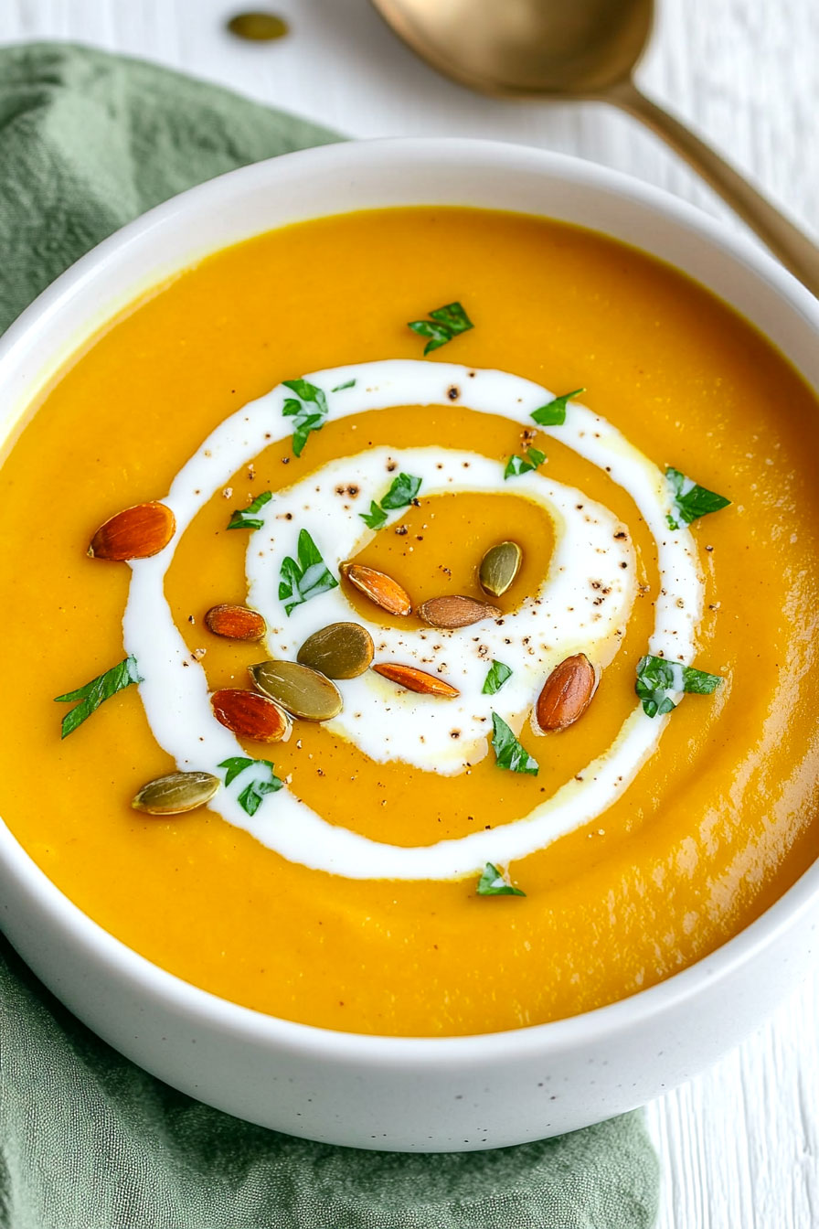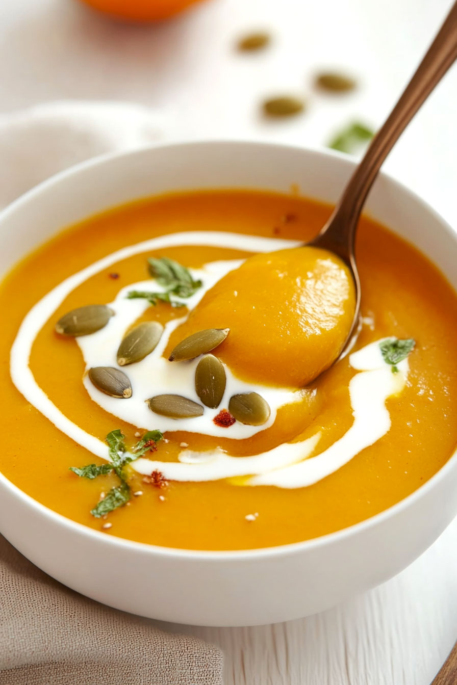 As the weather gets cooler and the days grow shorter, there’s nothing quite like a warm bowl of soup to lift your spirits. This curried butternut squash soup has become my go-to recipe when I need something comforting but don’t want to spend hours in the kitchen. The combination of sweet squash and aromatic curry spices creates a soup that’s both filling and flavorful, perfect for those busy weeknights when you want something nourishing without too much fuss. Plus, it’s naturally dairy-free and can easily be made vegan, making it a great option for feeding friends with different dietary needs.
