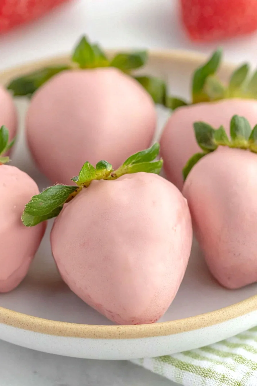 Keep Cool: Your pink chocolate covered strawberries will stay fresh and pretty in the refrigerator for 1-2 days. Place them in a single layer in an airtight container lined with paper towels – this helps absorb any excess moisture and keeps the chocolate from getting too soft.