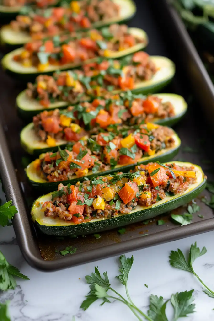 Keep Fresh: These stuffed zucchini boats are perfect for meal prep! Place them in an airtight container and keep them in the fridge for up to 3 days. The flavors actually get better as they sit, making them taste even more delicious the next day.