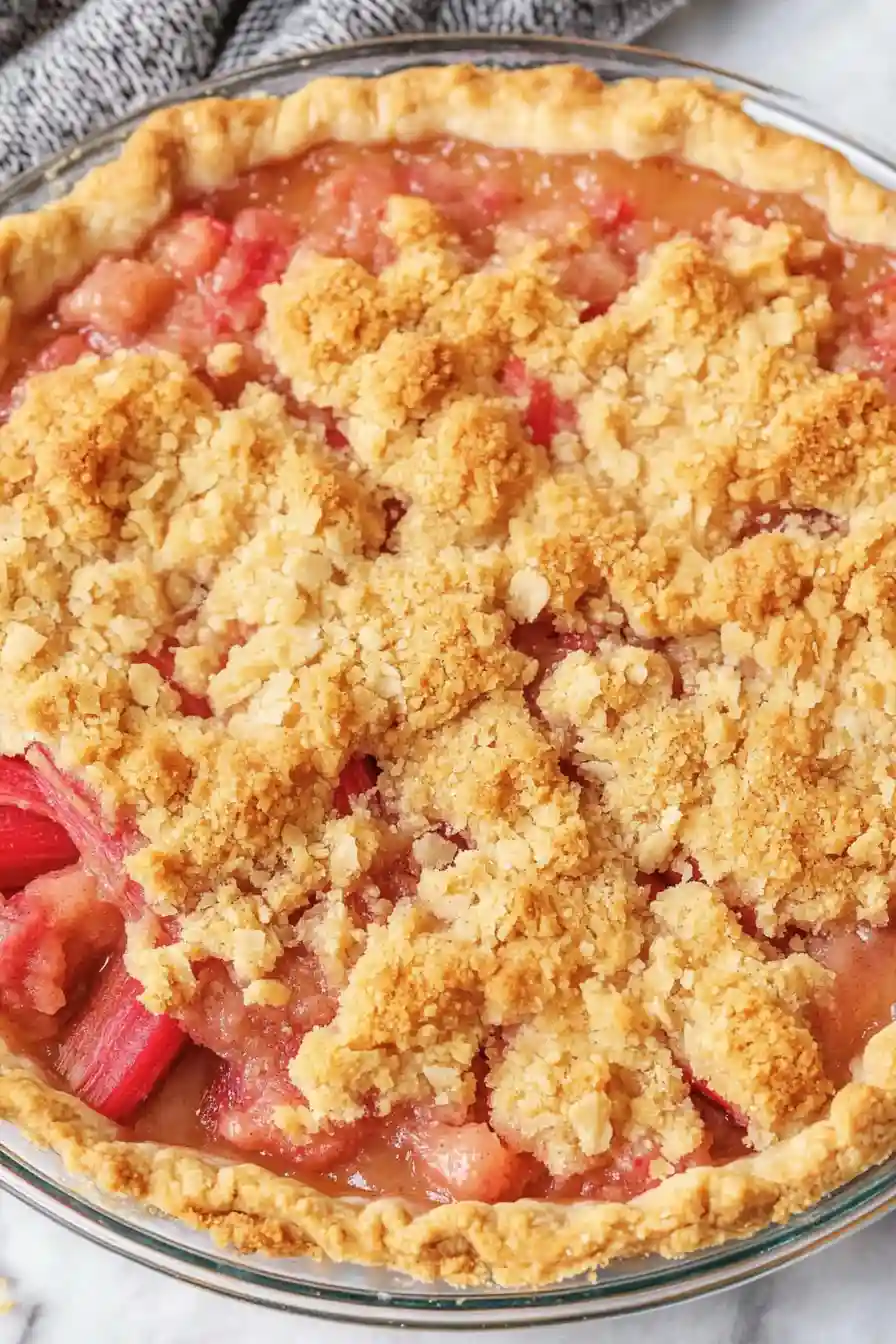 Keep Fresh: Your rhubarb crumble pie will stay good in the fridge for up to 4 days. Just cover it loosely with foil or plastic wrap once it’s completely cool. The crumble topping might soften a bit in the fridge, but it’ll still taste great!