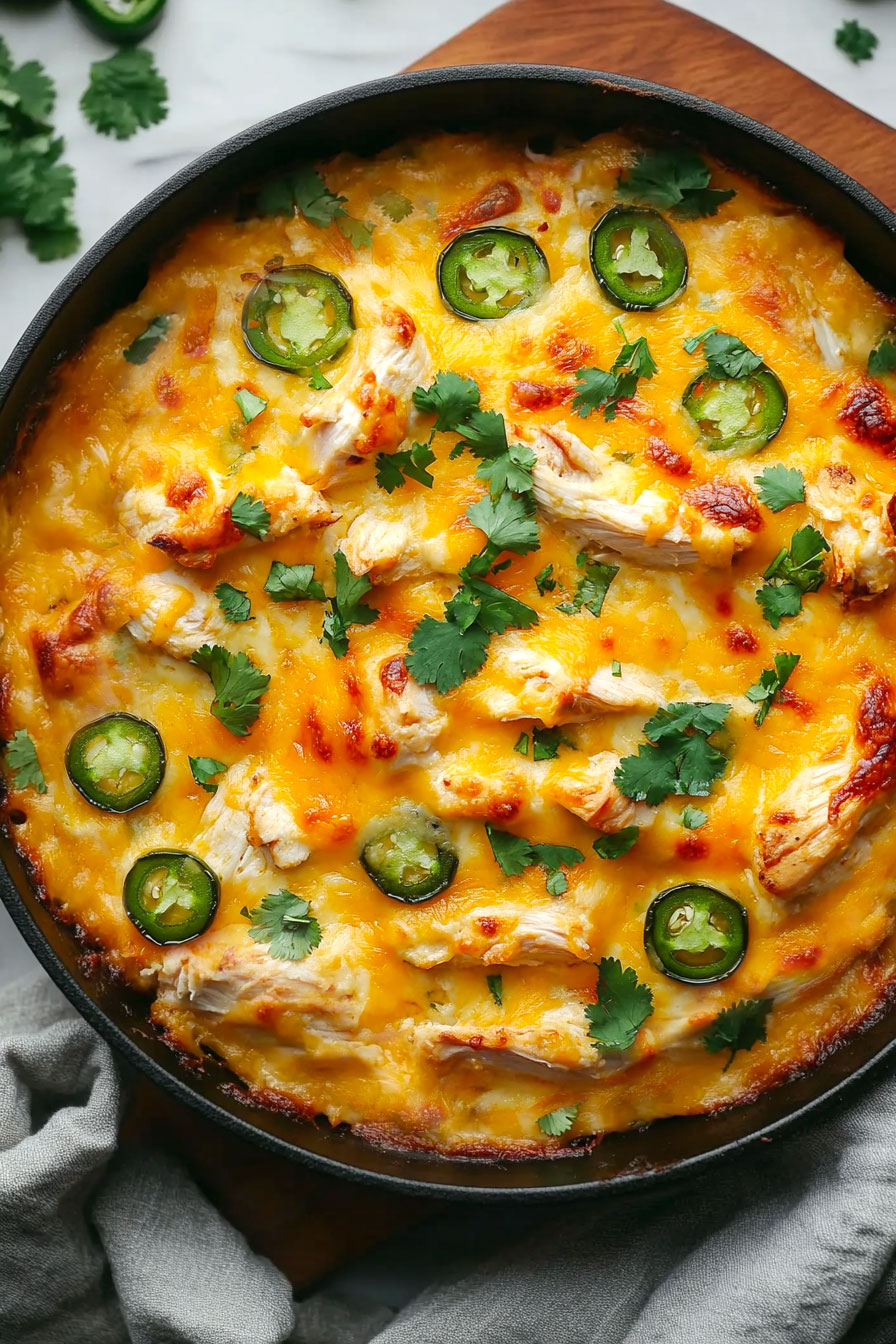 Once baked, remove from the oven and top with additional sliced jalapeños for extra heat and fresh cilantro for a burst of flavor.