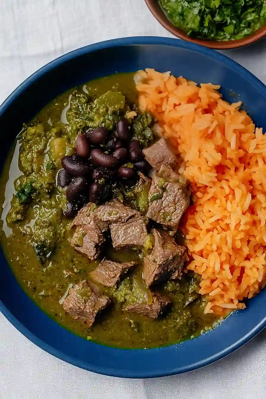 This spicy, flavorful beef dish calls for some classic Mexican-style sides to round out your meal. Warm corn or flour tortillas are a must-have – they’re perfect for scooping up the tender meat and soaking up all that tasty sauce. A pot of Mexican rice or cilantro-lime rice makes an excellent base, while some simple pinto or black beans would add a nice, hearty touch. For a fresh contrast to the rich beef, try serving it with diced onions, chopped cilantro, and lime wedges on the side, or add a scoop of cool guacamole to balance out the heat from the chiles.