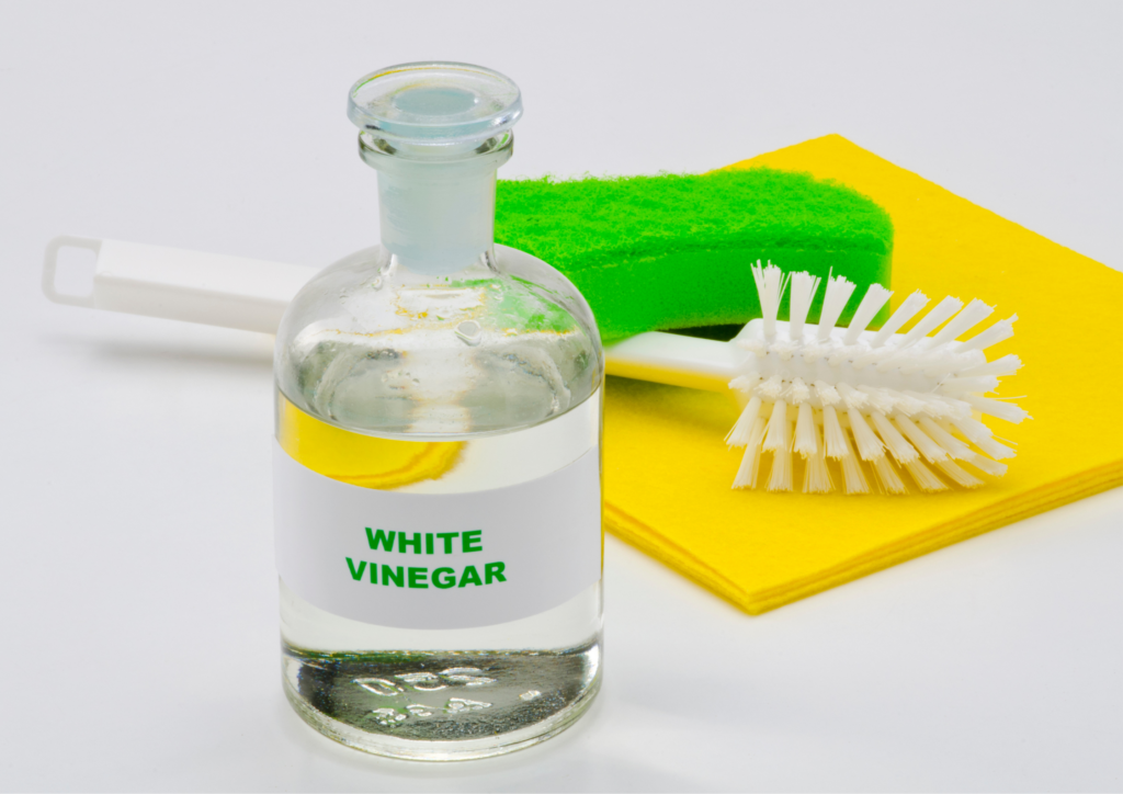 Next up, let’s mix up a simple yet effective cleaning solution. Fill your spray bottle with equal parts white vinegar and water.