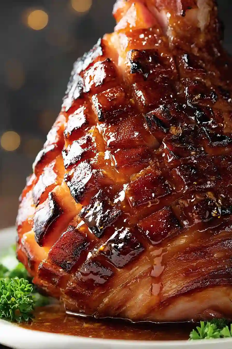 Temperature control is crucial here – keep your oven at 325°F or lower to prevent the honey and brown sugar from burning, and if the glaze starts getting too dark, simply tent the ham with foil.