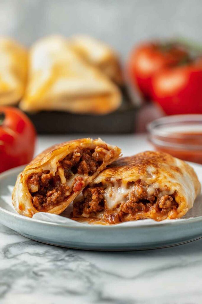 Don’t skip letting the meat mixture cool for a few minutes before assembling, as hot filling will melt the cheese too quickly and make rolling nearly impossible.