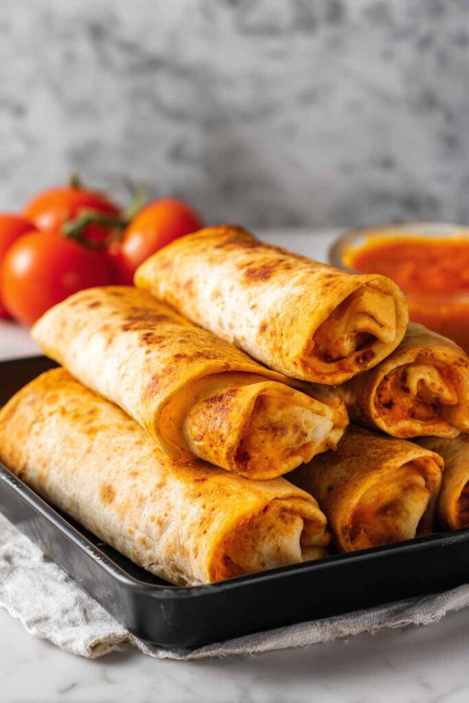 Toast in a preheated oven at 200°C (400°F) for 8–10 minutes, or air fry at 180°C (350°F) for 8–10 minutes, until the wraps are crispy and the cheese is melted.