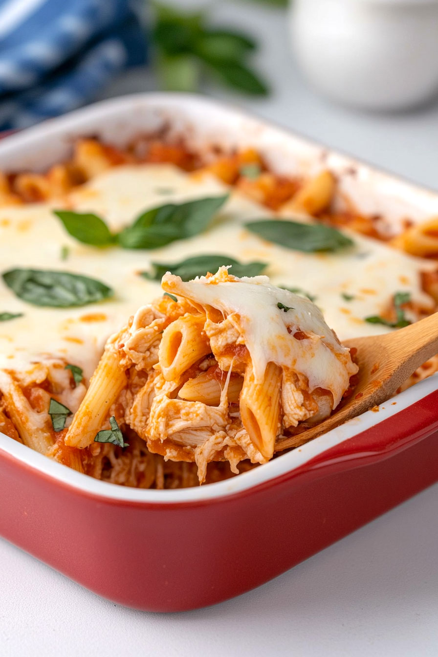 Penne pasta can be replaced with other pasta shapes like rotini or fusilli, which hold sauce well and maintain a similar texture. For a low-carb option, use zucchini noodles or spaghetti squash, adjusting cooking time accordingly. Prepared chicken can be substituted with cooked turkey, plant-based chicken alternatives, or firm tofu for vegetarian options. Ensure the substitute is well-seasoned to maintain flavor. Mozzarella cheese can be swapped with dairy-free alternatives like cashew-based or soy-based mozzarella for those avoiding dairy. These options melt similarly to traditional mozzarella, though cooking time may need slight adjustment to achieve desired consistency.