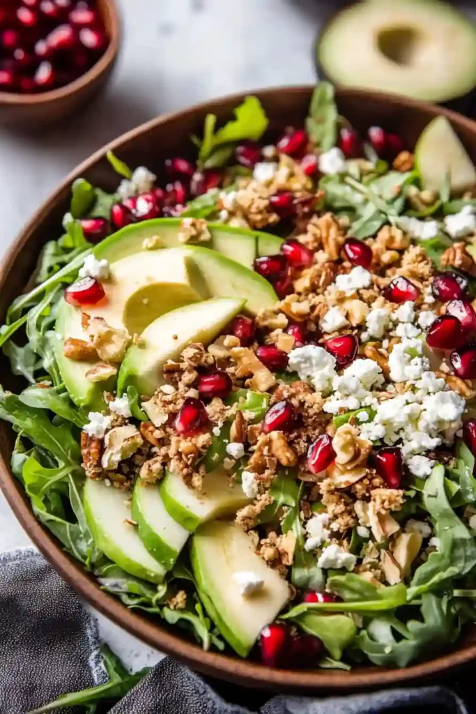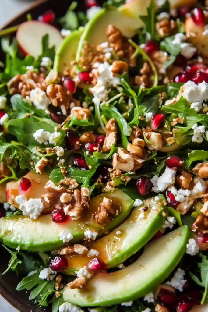 - Nutritious ingredients – Packed with healthy fats from nuts and avocados, plus antioxidants from pomegranate seeds and greens, this salad proves holiday food can be both delicious and good for you.