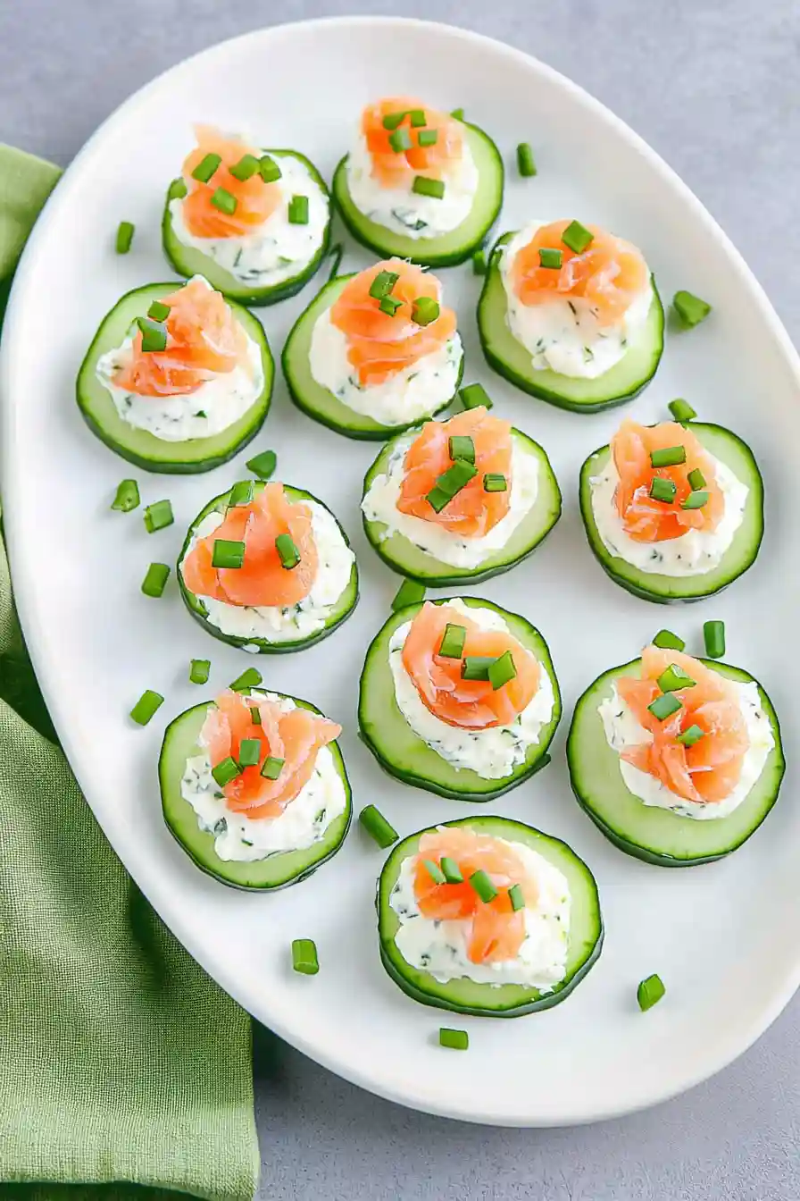 Store Components: If you have leftover ingredients, store the cream cheese mixture in an airtight container for up to 3 days, the sliced cucumbers separately for 1-2 days, and keep the smoked salmon according to its package instructions. This way, you can quickly assemble fresh bites when needed!