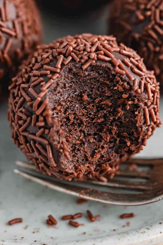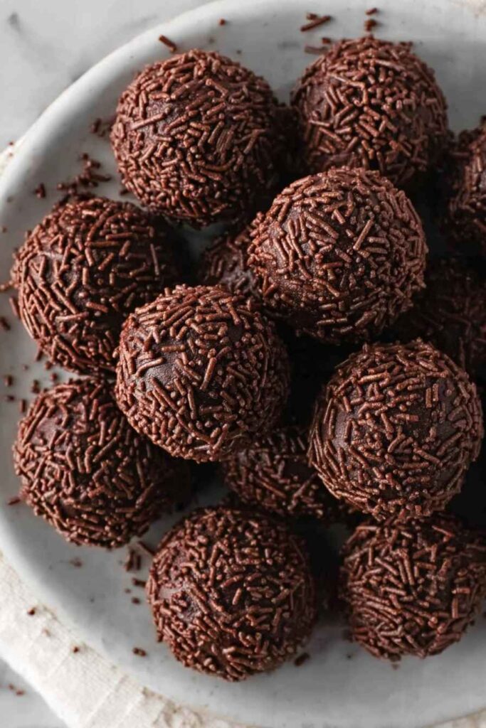 Immediately after rolling, toss each truffle in the bowl of chocolate sprinkles, ensuring it’s completely coated.