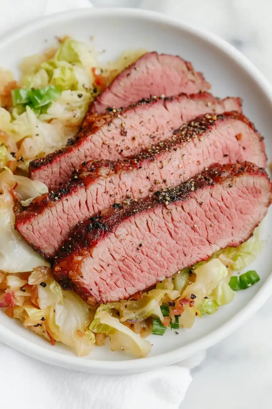 Serve the sliced corned beef alongside sautéed cabbage or your choice of vegetables for a delicious and hearty meal.