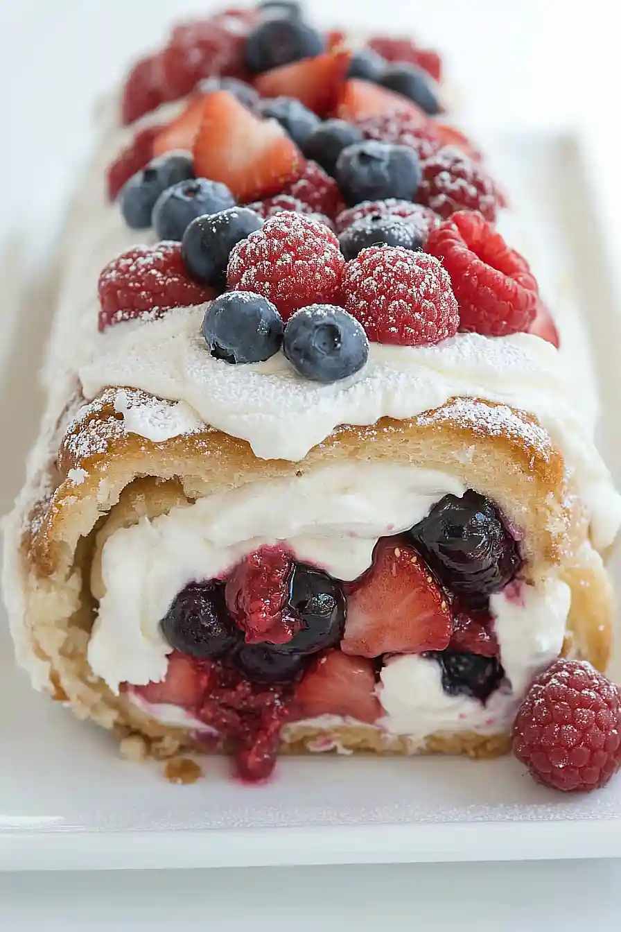 Don’t skip patting your berries dry with paper towels before adding them to the filling, as excess moisture can make your roll soggy and cause the filling to weep.