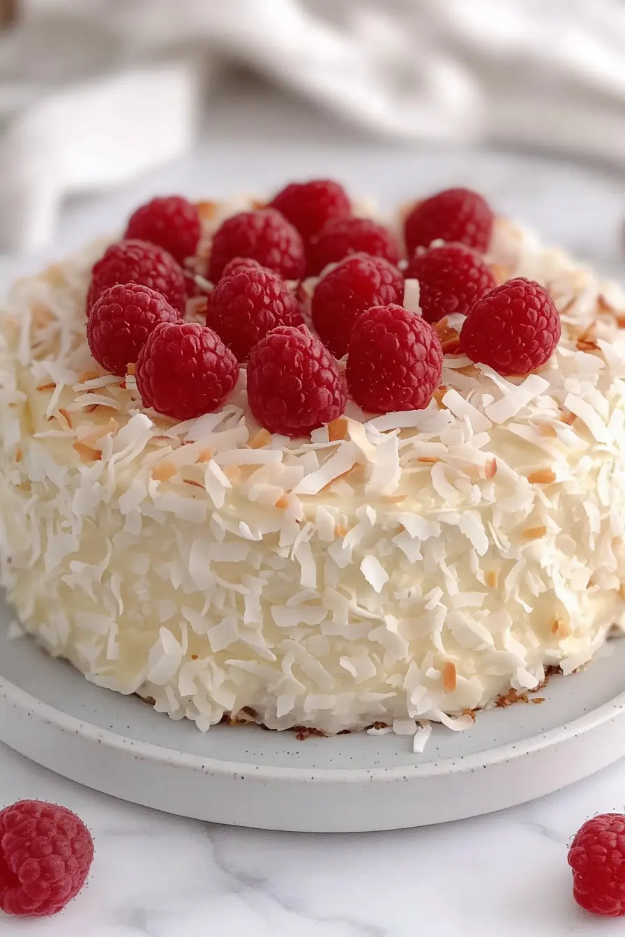 - Impressive presentation – The combination of toasted coconut, creamy frosting, and bright raspberry filling creates a beautiful cake that looks like it came from a professional bakery.