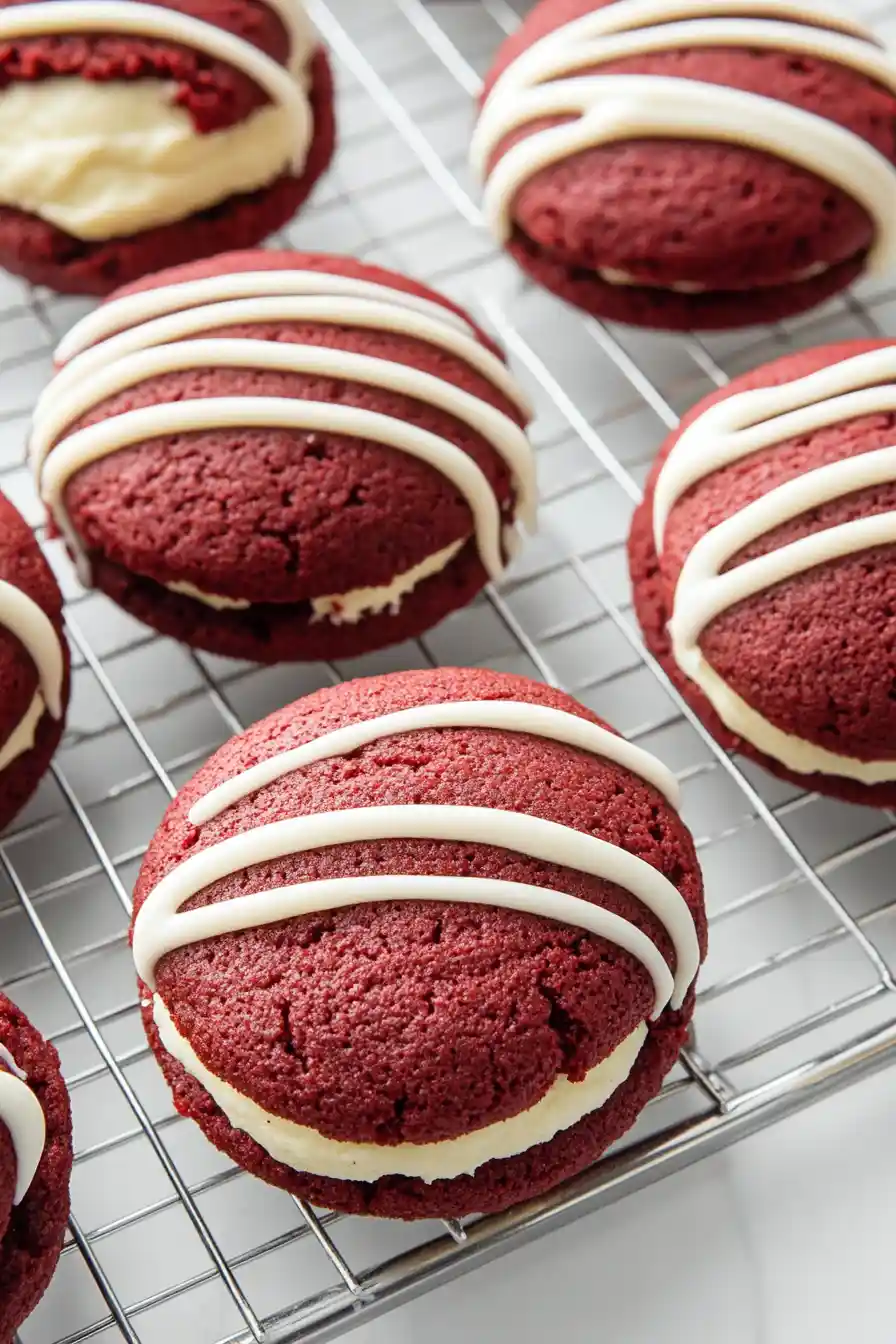- Classic dessert with a twist – These red velvet whoopie pies combine the beloved flavors of red velvet cake with the fun, handheld format of a cookie sandwich – perfect for parties or special occasions.