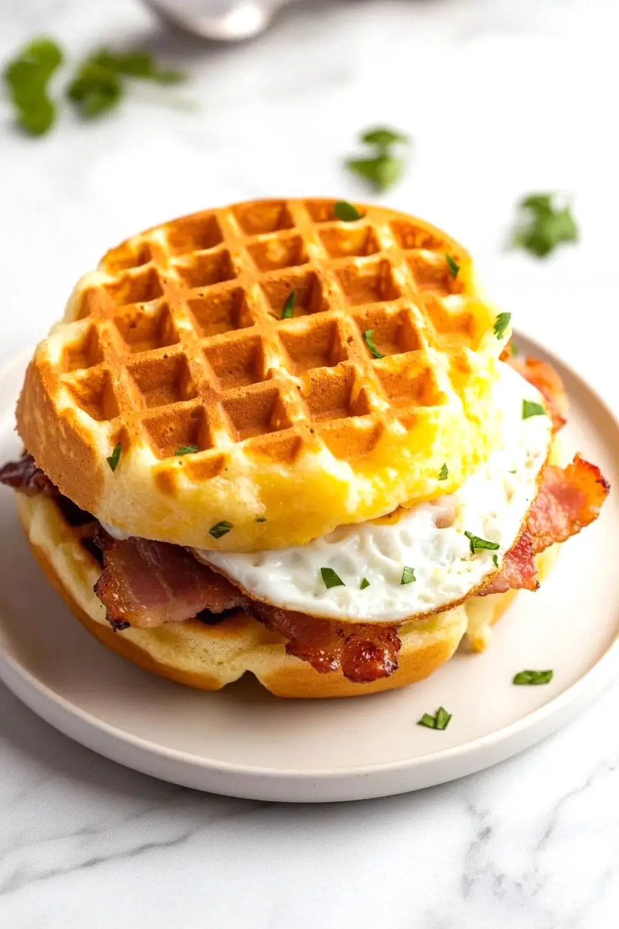 Top it off with the second waffle to complete your delicious and satisfying breakfast sandwich.
