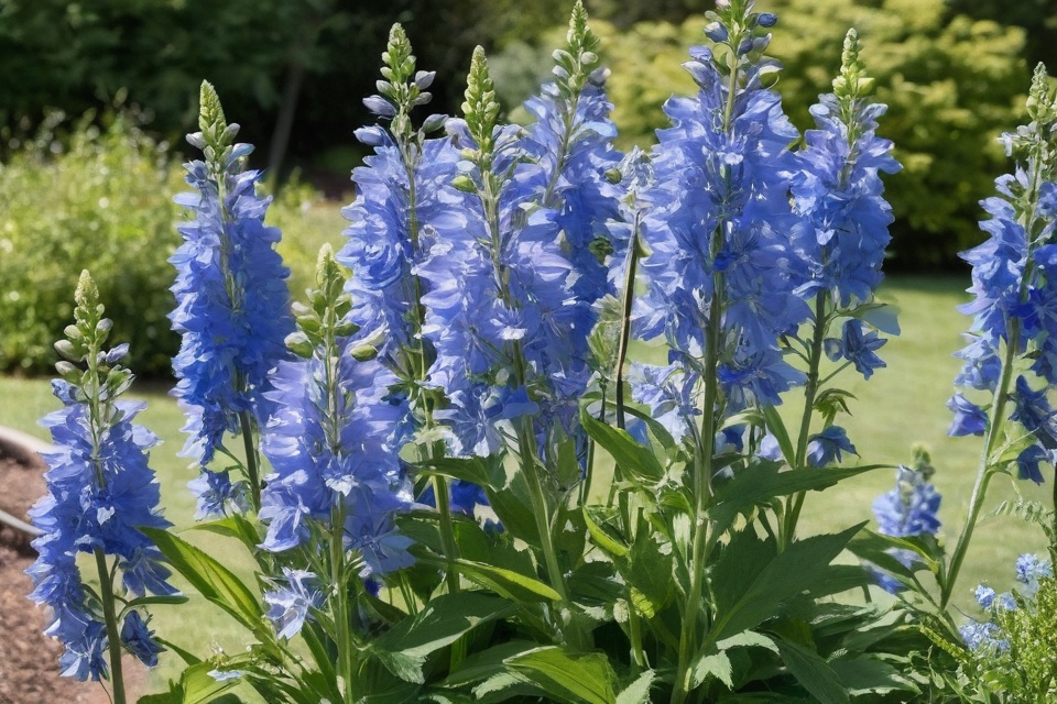 Finally, sit back and enjoy the show! Delphiniums bloom in early summer, and their tall, colorful spikes will be the envy of your neighborhood.