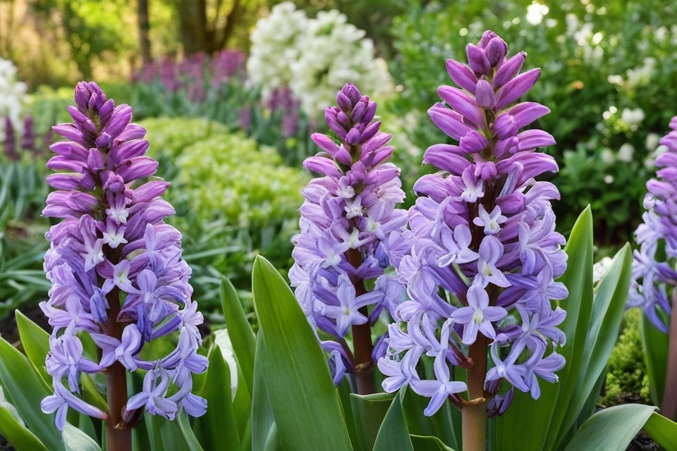 They come in various colors, including blue, pink, and white. Hyacinths also do well in pots, so you can enjoy them on your patio or balcony.