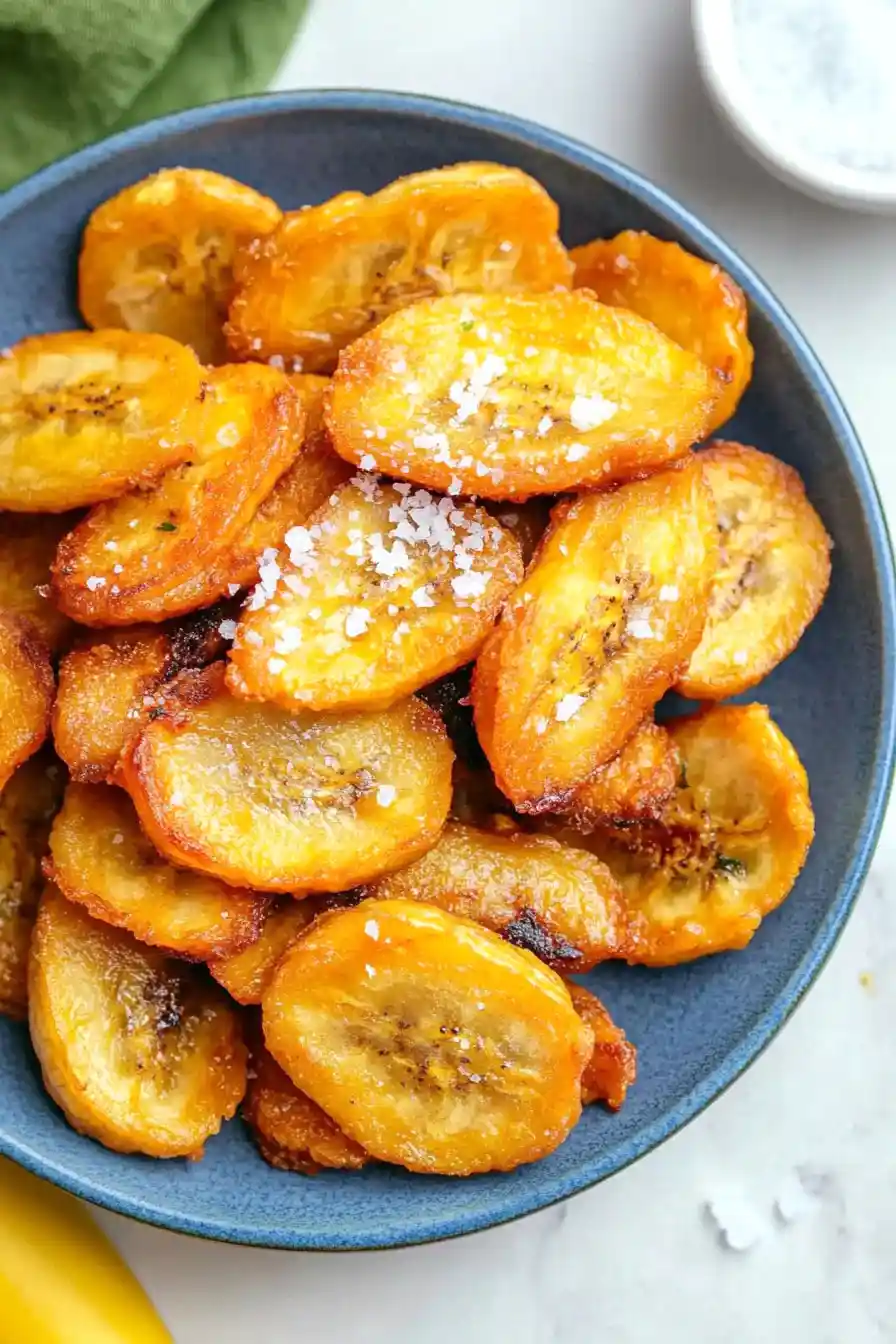 Make Ahead: You can slice your plantains ahead of time and keep them in water in the fridge for up to 24 hours. Just make sure to pat them completely dry before frying – this helps them get that perfect golden-brown color.