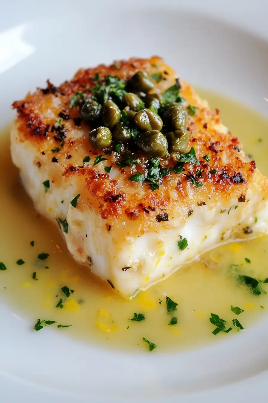 Here is my go-to baked cod piccata recipe, with a light lemon-caper sauce, a crispy panko coating, and a fresh parsley garnish that makes this fish dish feel special without being fussy.