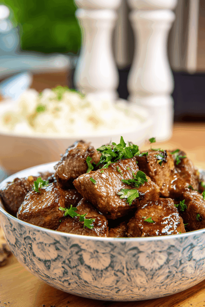 These tender steak bites are begging to be served over a bed of creamy mashed potatoes or fluffy rice to soak up all that amazing garlic butter sauce! If you’re keeping things low-carb, try them over cauliflower mash or zucchini noodles instead. A simple side of roasted vegetables like broccoli, asparagus, or green beans works perfectly with this dish, and they’re great for catching any extra sauce too. For a complete steakhouse-style meal at home, add a fresh garden salad with blue cheese dressing or some sautéed mushrooms on the side.