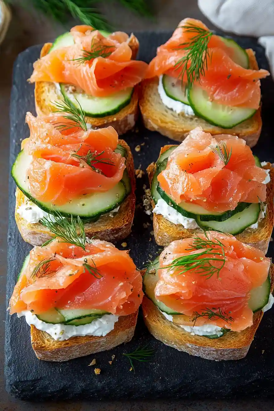 The combination of smooth cream cheese, fresh herbs, and smoky salmon creates little sandwiches that feel special without being fussy. A touch of lemon and dill keeps everything bright and fresh.