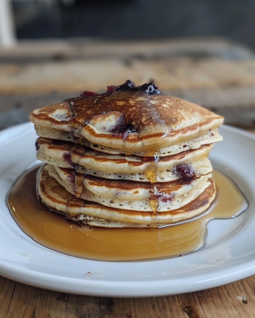 Perfect for a hearty breakfast or brunch, these pancakes are light, moist, and packed with protein.