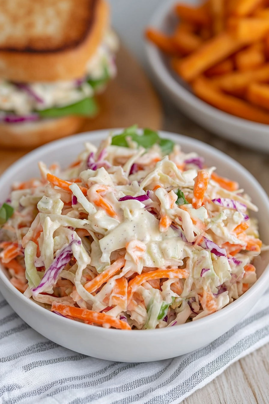 Serve the coleslaw cold as a refreshing side dish to your meal.
