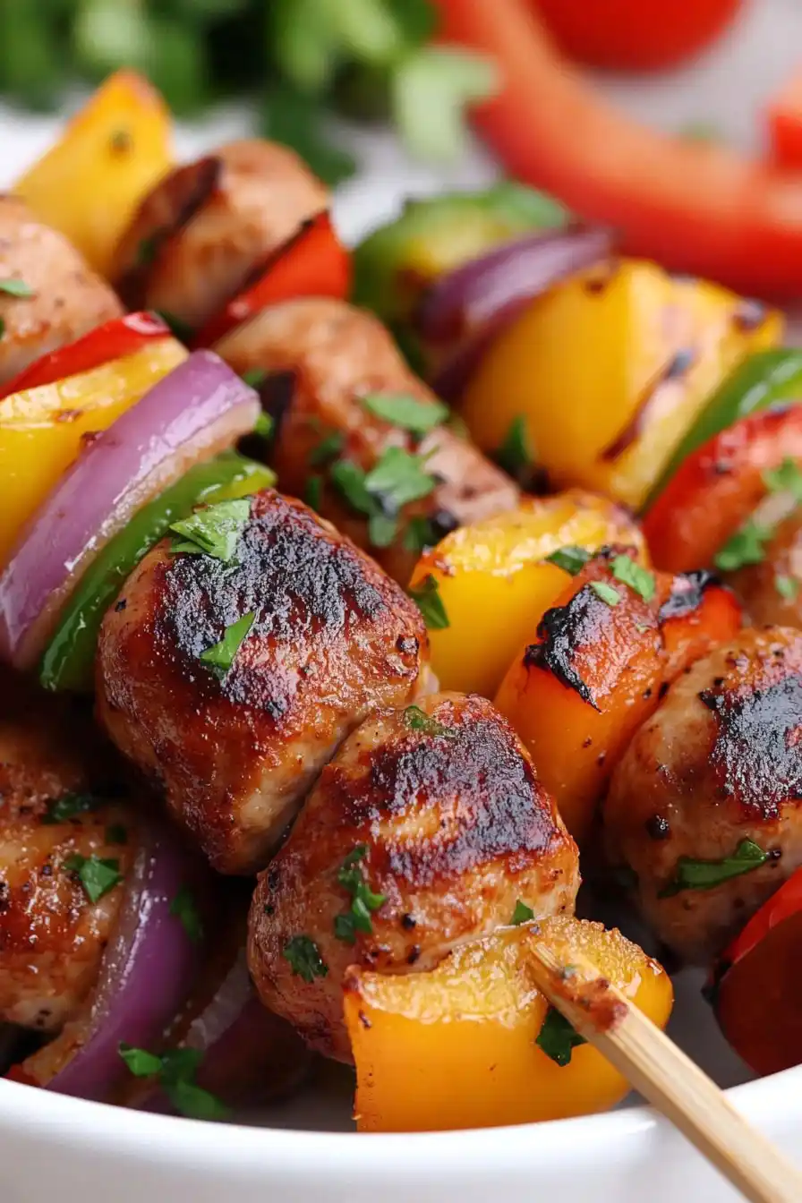 These colorful skewers bring together juicy chicken sausage and seasonal vegetables, all kissed with a light char from the grill. The combination of slight smokiness and natural flavors makes every bite interesting.