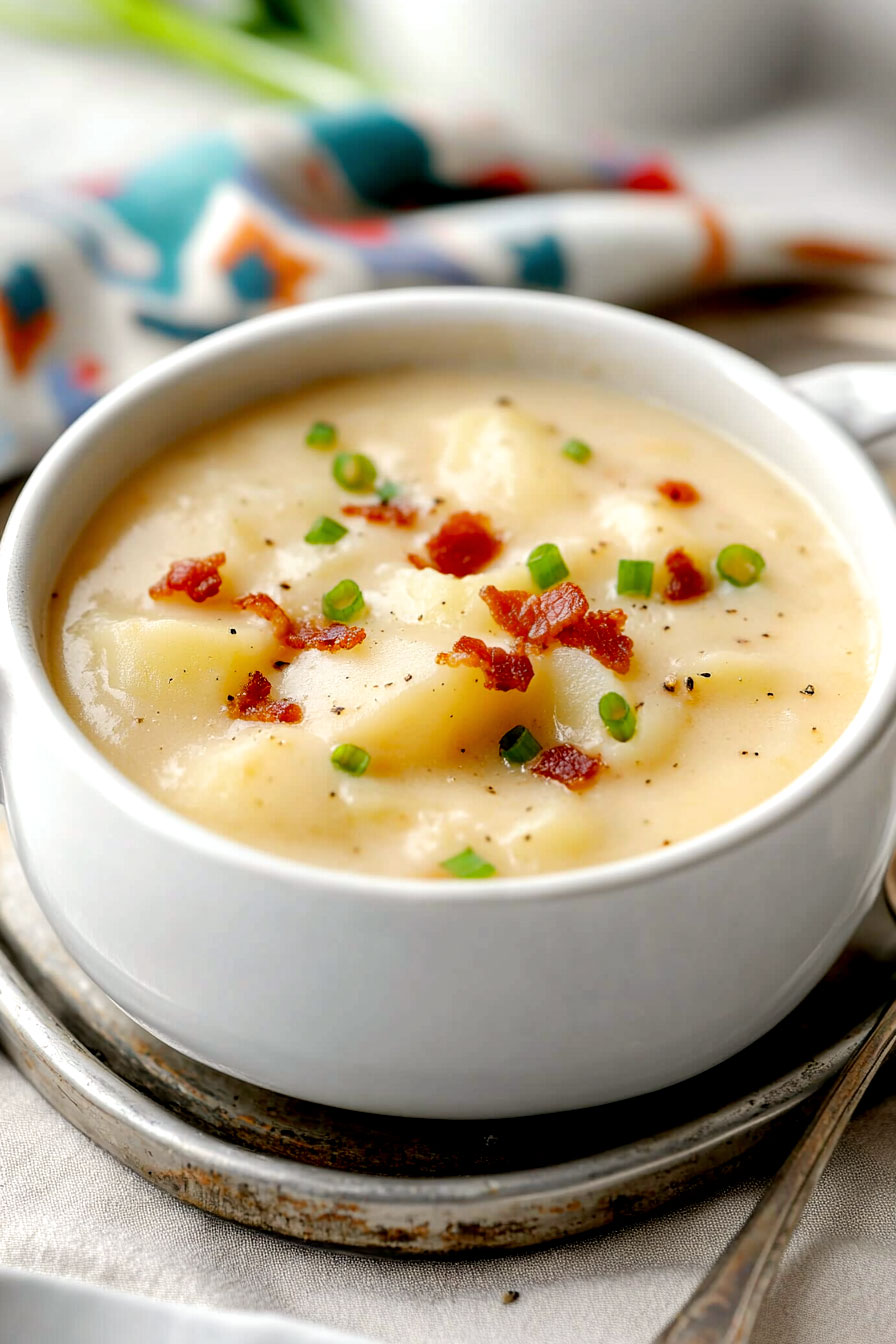 Living alone doesn’t mean you have to settle for a bowl of cereal when you’re craving something warm and comforting. I learned this the hard way during my first year in my own apartment, eating far too many sad microwave meals. Then one cold evening, I discovered I could make a perfect single serving of potato soup with just a few basic ingredients I already had in my kitchen. No need to make a huge pot that I’d have to eat for days. This recipe is exactly what I needed back then – simple, quick, and just enough for one person who wants a bowl of something homemade without the leftovers.
