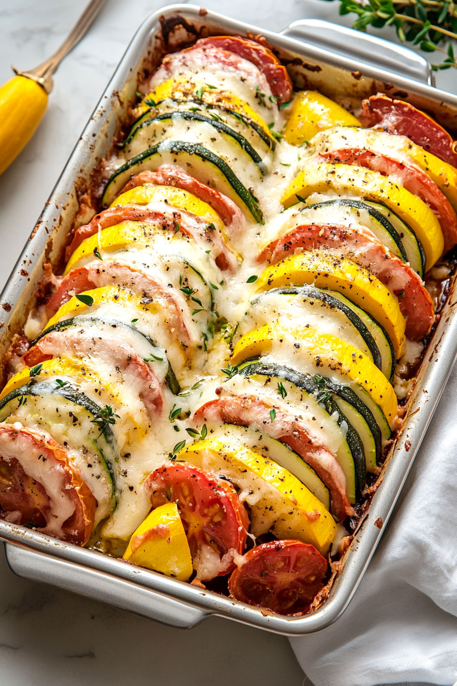 I’ve got a treat for you today: a baked zucchini and squash casserole!