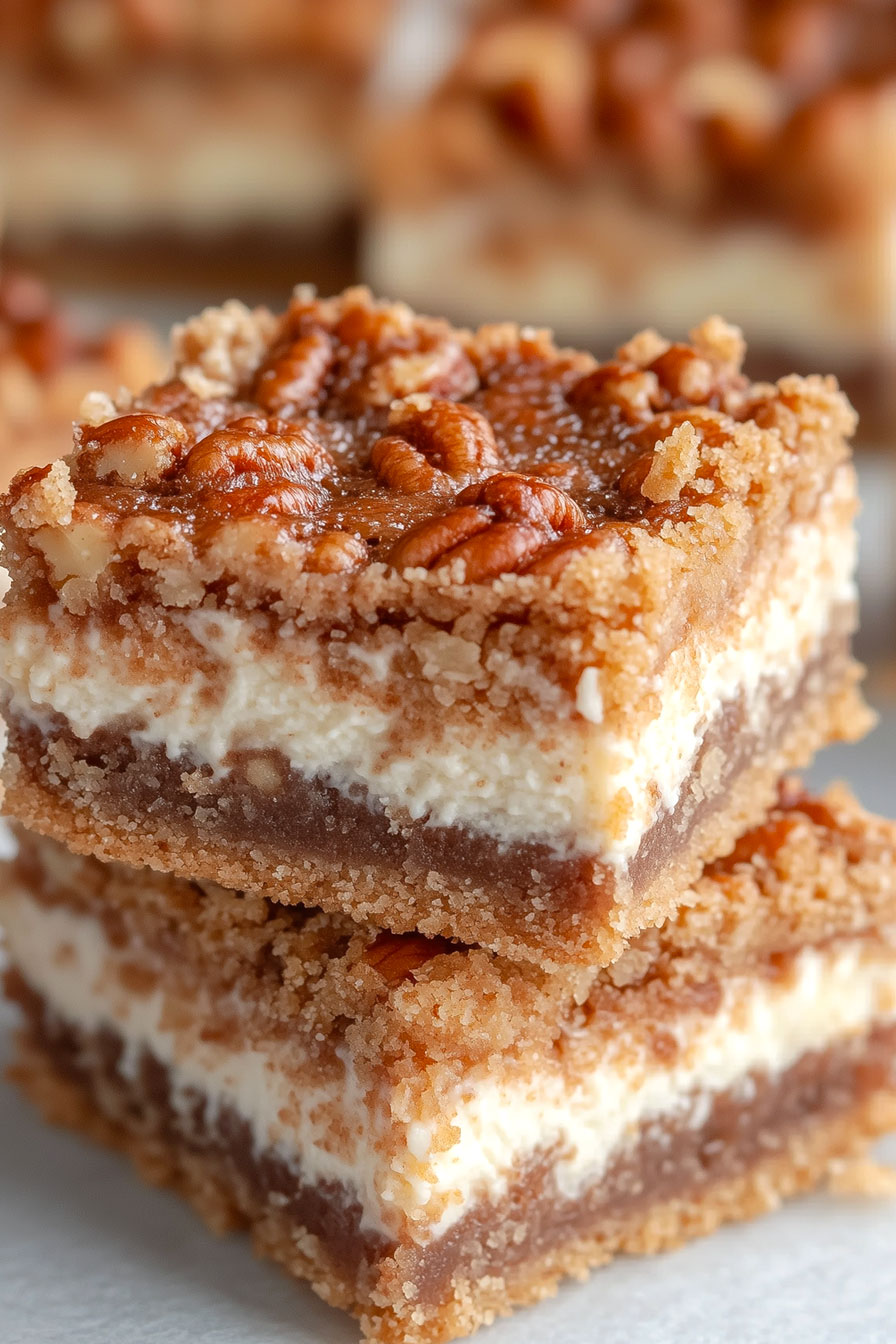 Today, I’m sharing my recipe for pecan pie cheesecake bars.
