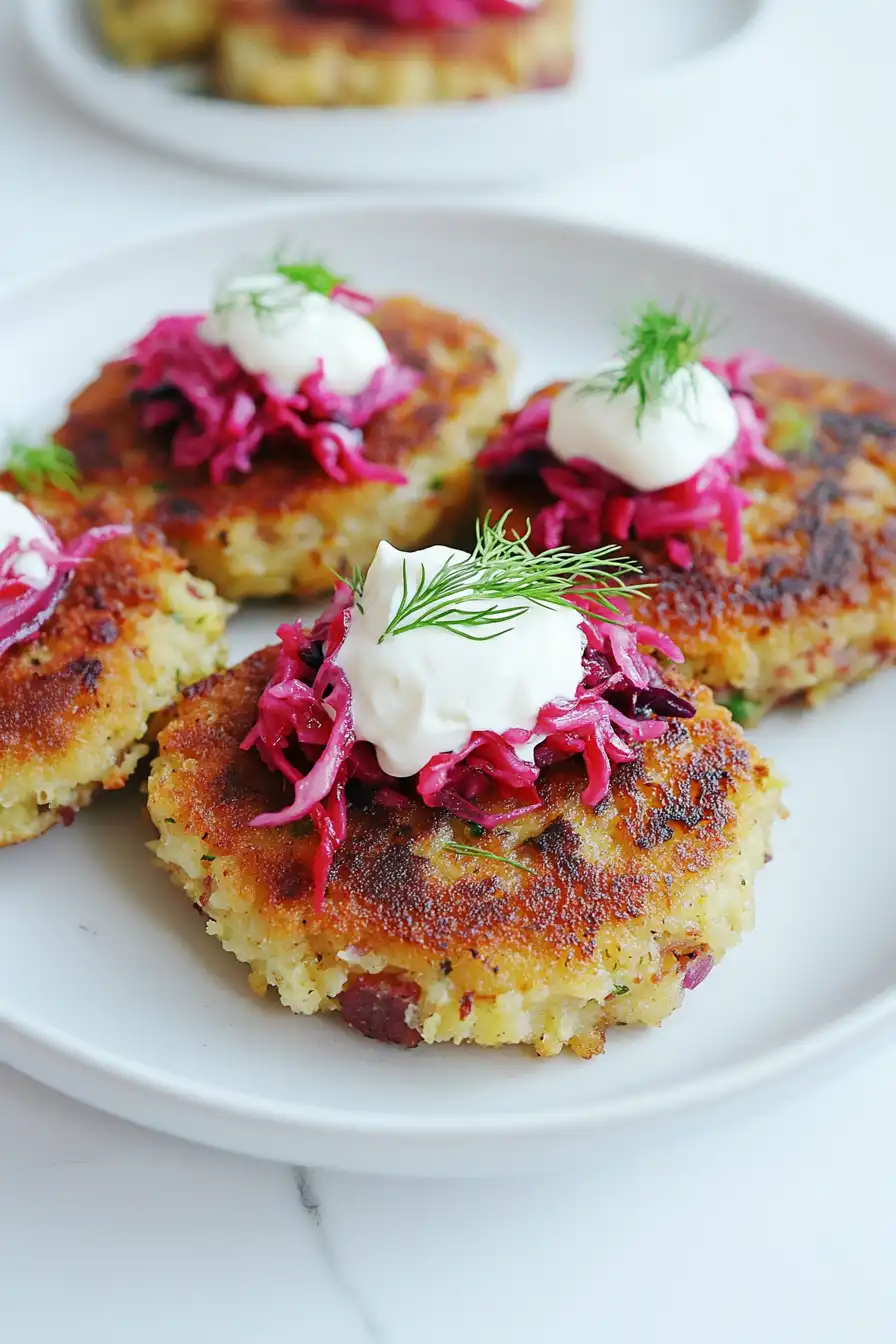 These crispy patties are perfect for breakfast or brunch, and they pair really well with a few sunny-side-up eggs on top – the runny yolk creates an amazing sauce! For a complete morning meal, I like to serve them with some simple sautéed vegetables like bell peppers and onions, or a side of fresh fruit to balance out the savory flavors. If you’re serving these for lunch or dinner, try them with a crisp green salad dressed in a light vinaigrette, or some tangy sauerkraut for a nod to traditional corned beef flavors. A dollop of sour cream or whole grain mustard on the side makes a great dipping sauce too!