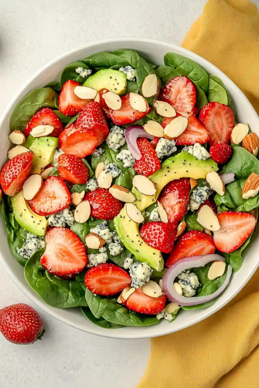 - Fresh and filling – The mix of creamy avocado, sweet strawberries, and crunchy almonds makes this salad satisfying enough for a light meal.