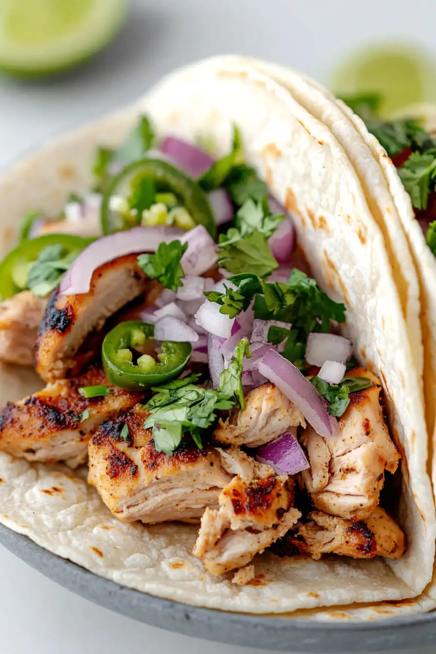Keep Fresh: Place any leftover cooked chicken in an airtight container and pop it in the fridge for up to 4 days. I recommend storing the toppings (onions, cilantro, and jalapeños) separately to keep everything fresh and crisp. The tortillas should be kept in their original packaging or wrapped in foil at room temperature.