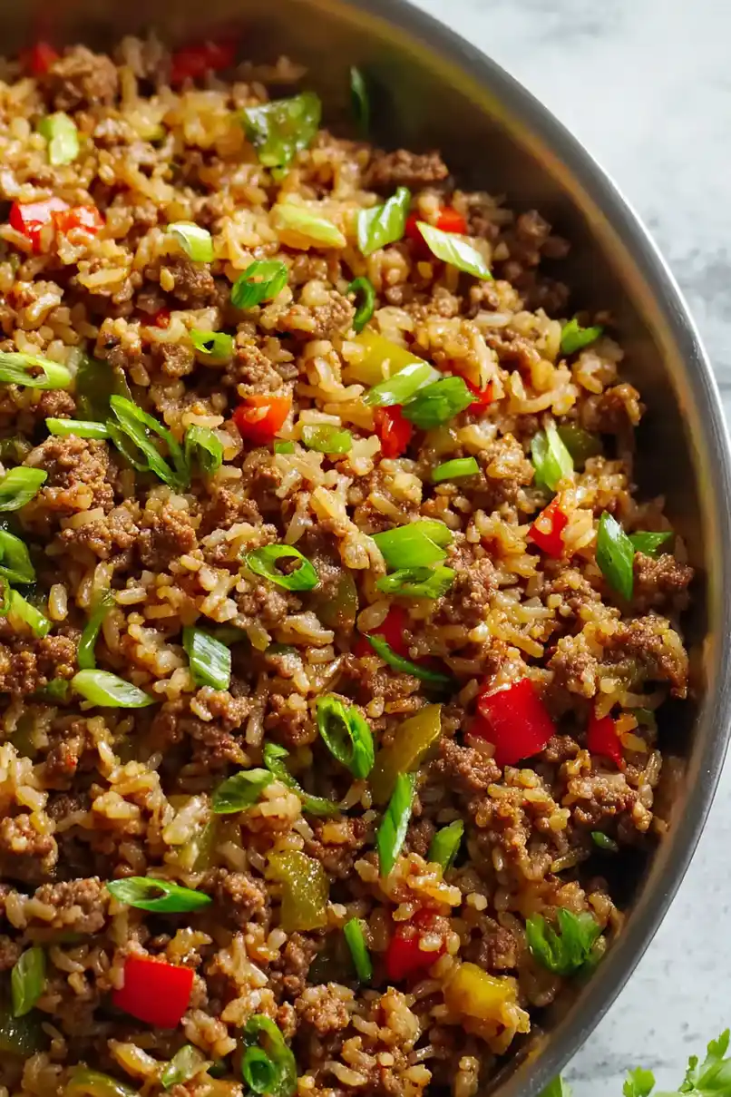 Reheat: To warm up your dirty rice, add a splash of broth or water to keep it from drying out, then heat it in the microwave or on the stovetop. Give it a good stir halfway through heating to make sure it warms evenly. Top with fresh scallions and hot sauce just before serving to bring back that fresh-made taste.