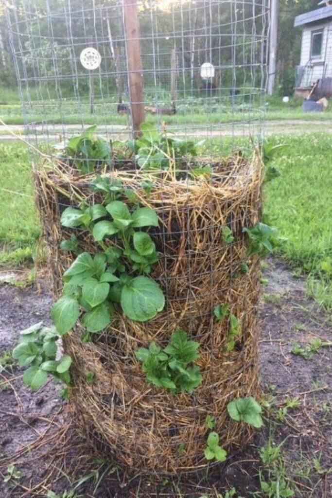 - As your potato plants grow, keep adding mixtures of straw and soil.