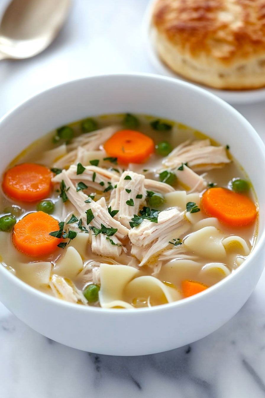 Growing up, I always thought homemade chicken soup meant spending hours in the kitchen, watching a whole chicken simmer away. That’s how my grandmother made it, and while it was wonderful, I rarely had that kind of time. Then one busy weeknight, with only a can of chicken in my pantry, I discovered something: you can make a really good chicken soup without the long wait. Sure, it’s not exactly like grandma’s, but on those days when you need something warm and comforting without the fuss, this quick version hits the spot. Plus, it’s become my go-to recipe for those times when someone in the house has a cold but I’m too tired to cook anything complicated.