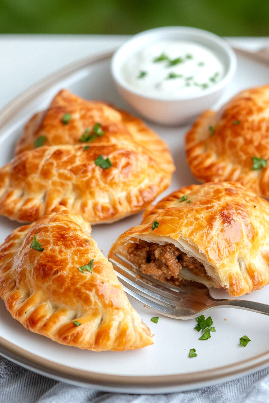 Ground lamb can be substituted with ground beef or turkey for a different flavor profile or to accommodate dietary preferences. Use the same amount and adjust cooking time if needed, as turkey may cook faster. For a vegetarian option, finely chopped mushrooms or lentils can replace the lamb, providing a similar texture and protein content. Empanada dough rounds can be swapped with phyllo dough or puff pastry sheets for a flakier texture. Cut these into circles and adjust baking time accordingly. Sour cream in the sauce can be replaced with Greek yogurt for a tangier, protein-rich alternative. Use the same amount and expect a slightly thicker consistency. These substitutions maintain the dish’s overall flavor while offering flexibility for various dietary needs and preferences.