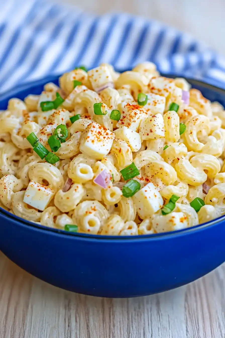 Make Ahead: You can prep this salad up to a day before serving – it’s perfect for potlucks or picnics! If making ahead, consider adding a little extra mayo just before serving, as the pasta tends to absorb the dressing over time. Also, hold off on adding the green onions until you’re ready to serve to keep them fresh and crunchy.