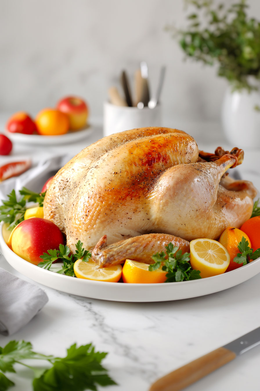 For the turkey, consider using a large chicken or multiple Cornish game hens as alternatives. These options cook faster and may be more suitable for smaller gatherings. Adjust cooking times accordingly. Butter can be replaced with olive oil or coconut oil for a dairy-free option, maintaining moisture and flavor. Use the same amount as butter. Garlic can be substituted with garlic powder or shallots. For garlic powder, use 1/4 teaspoon per clove of fresh garlic. Shallots can be used in equal amounts to fresh garlic, providing a milder flavor. These substitutions accommodate various dietary needs while preserving the dish’s overall taste profile and nutritional value. Remember to adjust seasoning amounts to taste when using alternative ingredients.