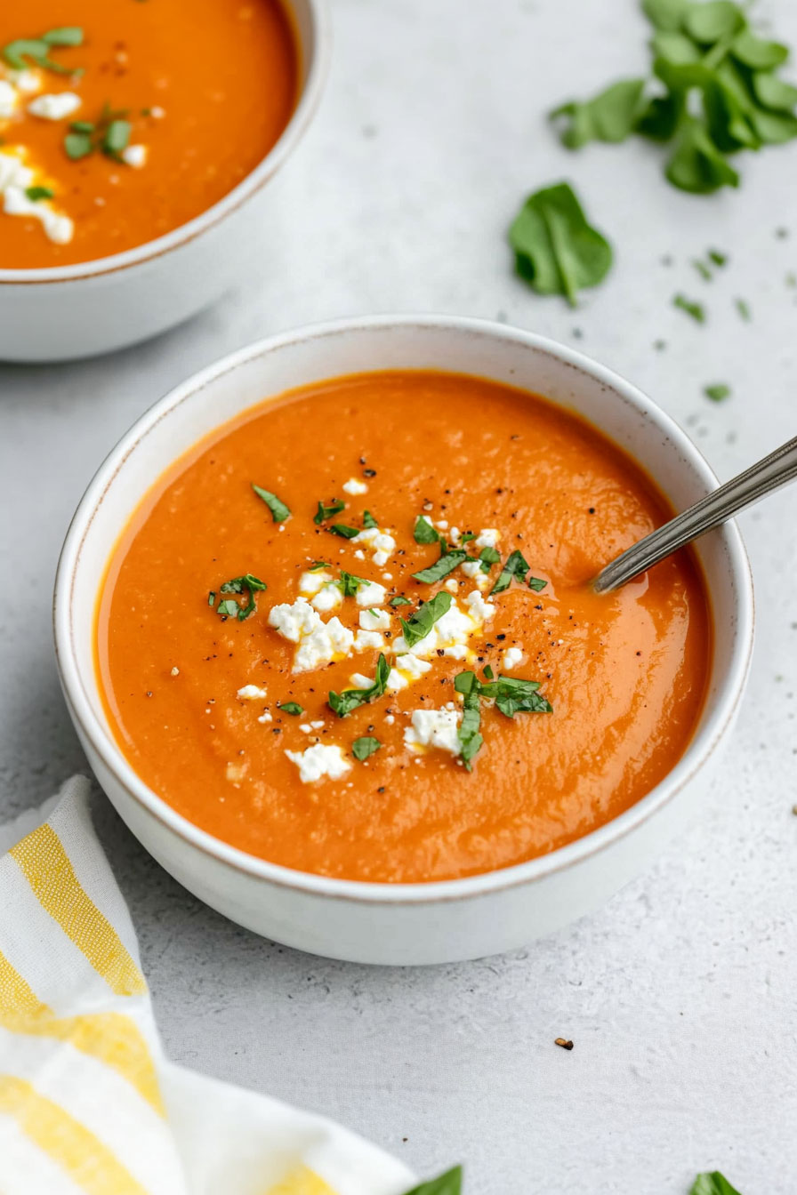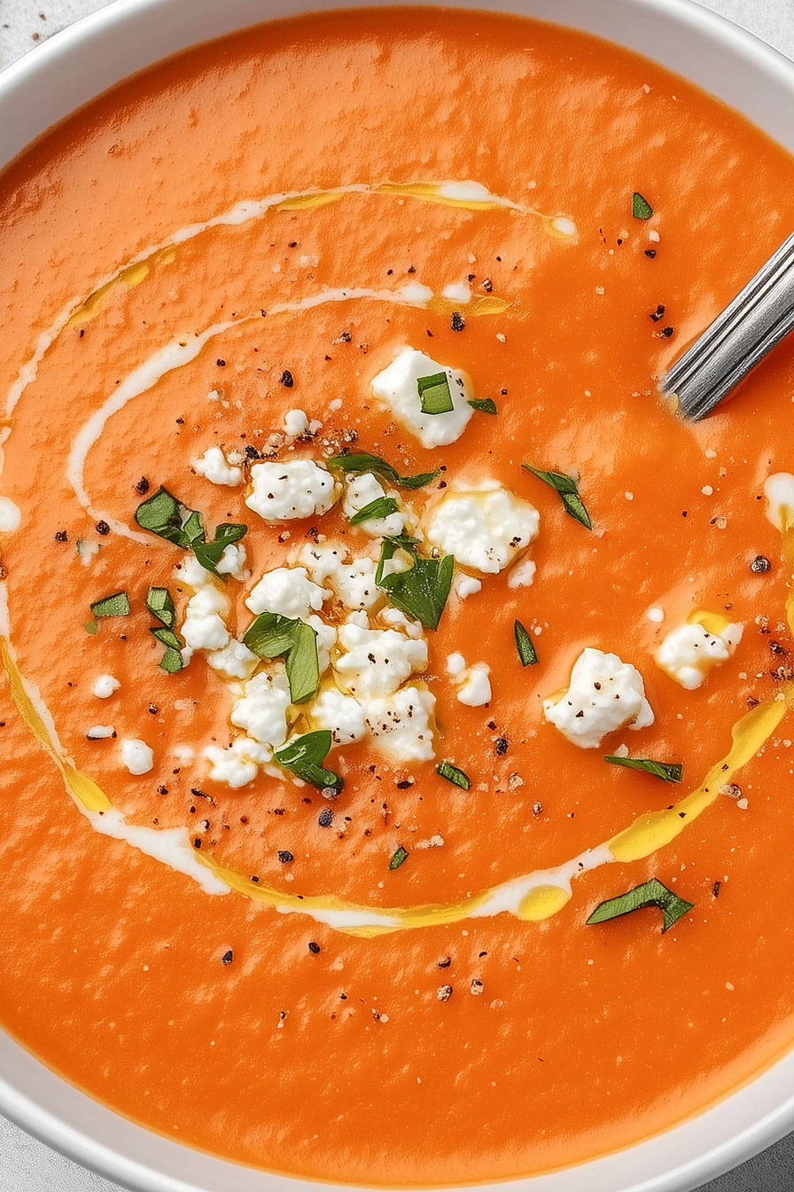 Today, I’m sharing my go-to recipe for tomato soup with feta.