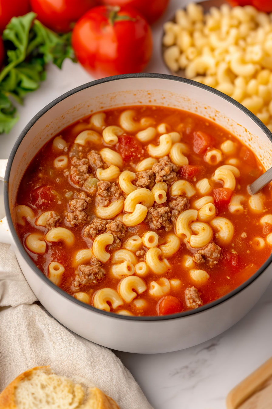 Today, I’m sharing my go-to recipe for tomato soup with macaroni.