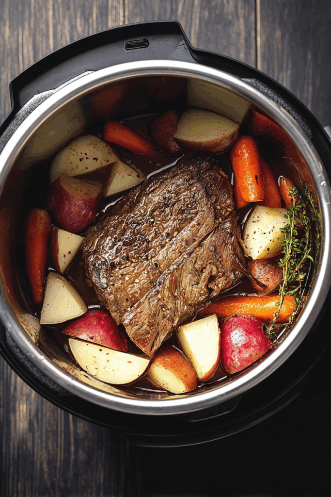 - Budget-friendly – Chuck roast is an affordable cut of meat that becomes incredibly tender in the pressure cooker, and basic vegetables like carrots and potatoes help stretch the meal even further.