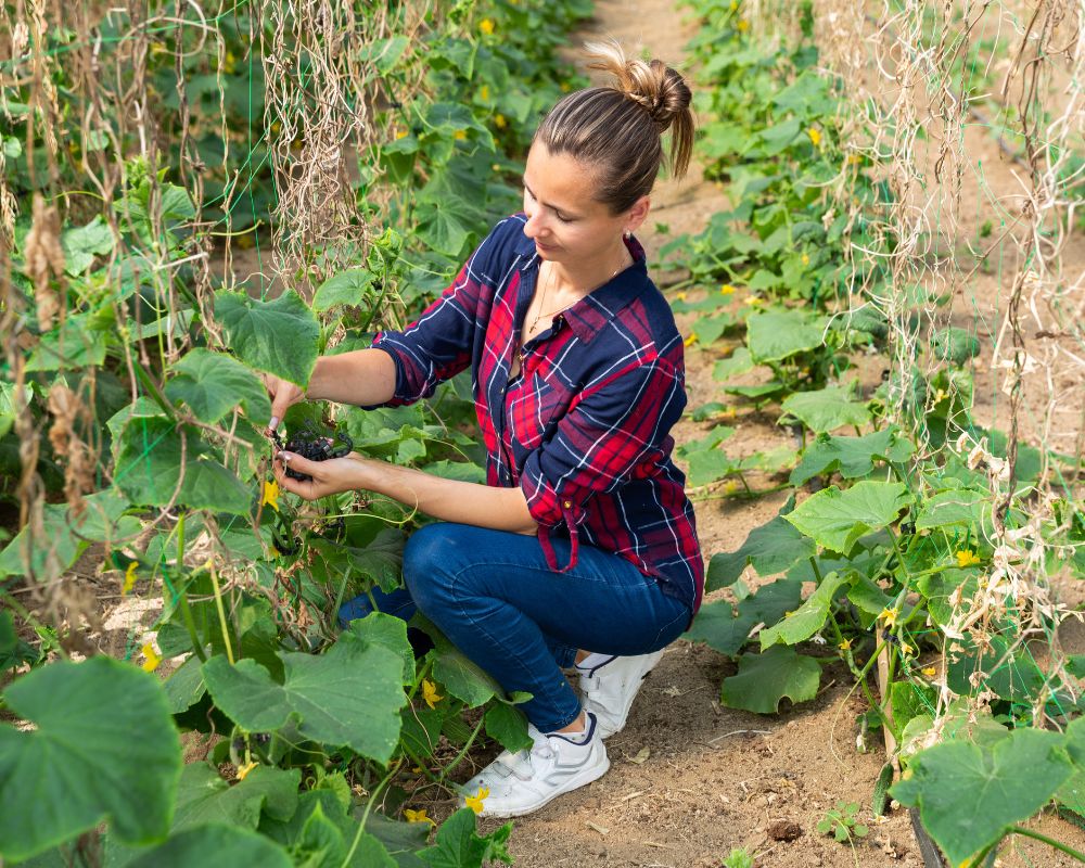 Gentle Harvesting: Take care when picking cucumbers to prevent damage to the trellis and plants. Harvest mature fruits gently to promote further growth and to keep the structure intact.
