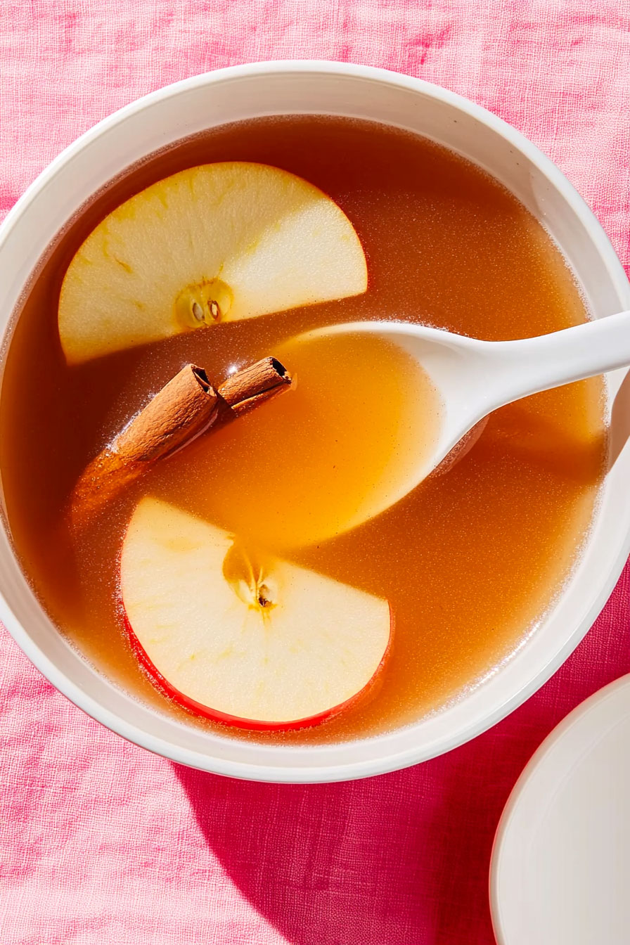Enjoy the comforting warmth of this apple cider punch, served directly from the bowl.