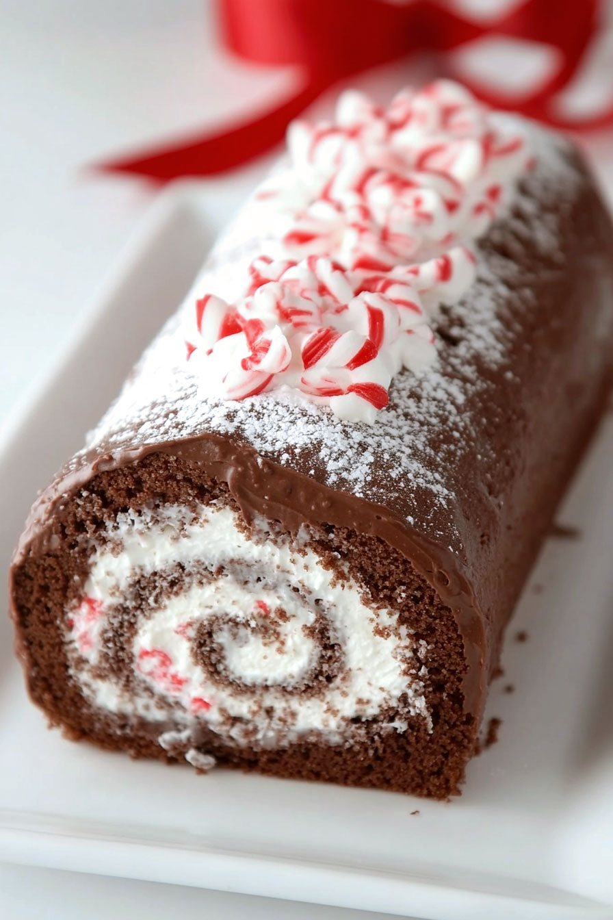 Let me introduce you to my Christmas Peppermint Yule Log Cake.