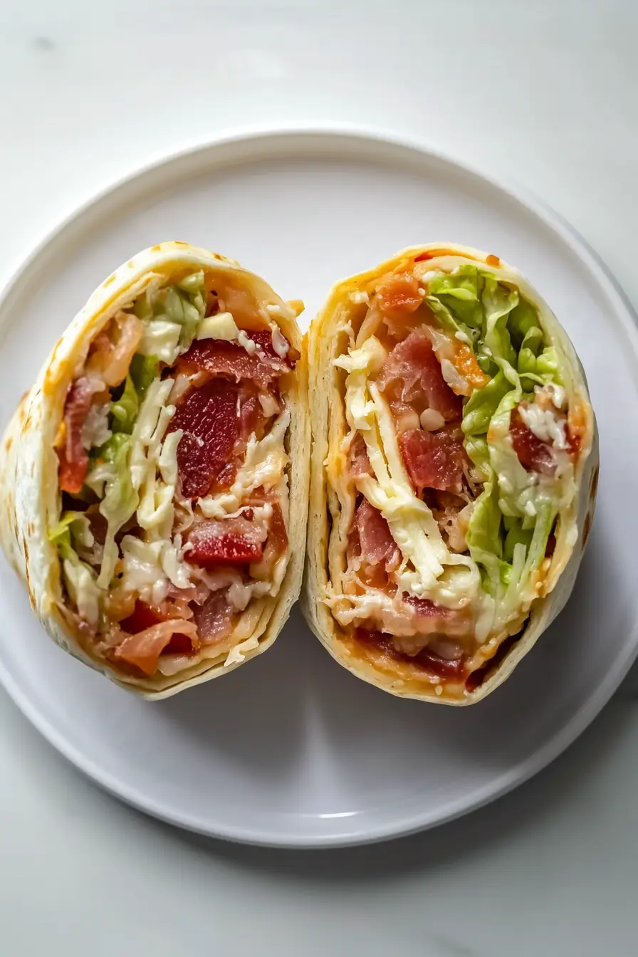 These BLT wraps make a perfect lunch or light dinner, and there are lots of tasty sides that go great with them! A handful of crispy potato chips or french fries on the side adds that satisfying crunch factor that everyone loves. For a healthier option, try a simple pasta salad with Italian dressing or a bowl of fresh fruit – the coolness pairs really well with the savory bacon in the wraps. I often serve mine with pickle spears too, since their tangy flavor helps cut through the richness of the bacon and cheese.